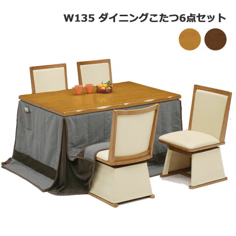 こたつ ダイニングこたつ 6点セット こたつテーブル ハイタイプ 長方形 高さ調整 継ぎ足 135×85cm 4人掛け ダイニングこたつセット 回転椅子 高脚こたつ 家具調こたつ 布団セット ハロゲンヒーター 手元コントローラー ドット ブラウン ナチュラル 炬燵 モダン