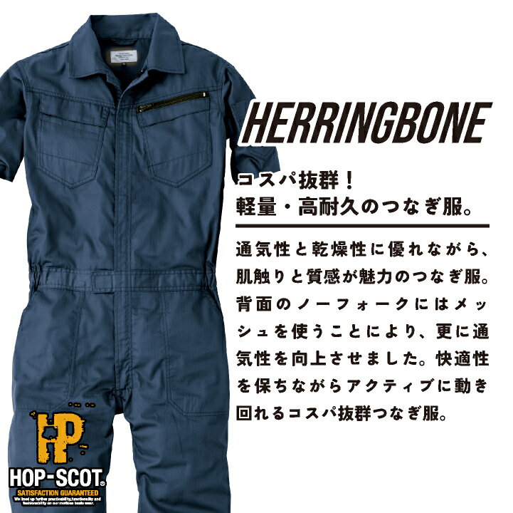つなぎ メンズ 半袖つなぎ ヘリンボーン 作業服 作業着 オールインワン 作業つなぎ HOP SCOT 中国産業 cs-9213
