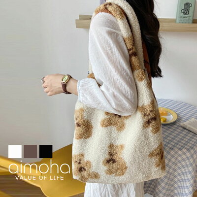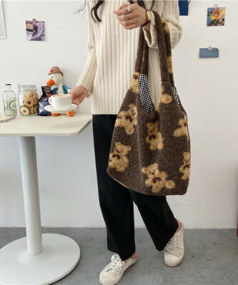 【OUTLET★特別価格】くま柄トートバッグ トートバッグ レディース ショルダーバッグ ハンドバッグ バッグ 肩掛け もこもこ かわいい おしゃれ 韓国 ライク オルチャン ベア柄 もこもこ ふわふわ 【リバーシブルの2WAY】