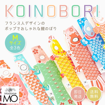 Madame Mo(マダムモー) こいのぼりの商品説明 カラフルでポップな「こいのぼり」は、フランスではタペストリーのようにお部屋を飾るインテリアとして、またお子さんが“すくすく育つ”というシンボルとして一年中親しまれて います。