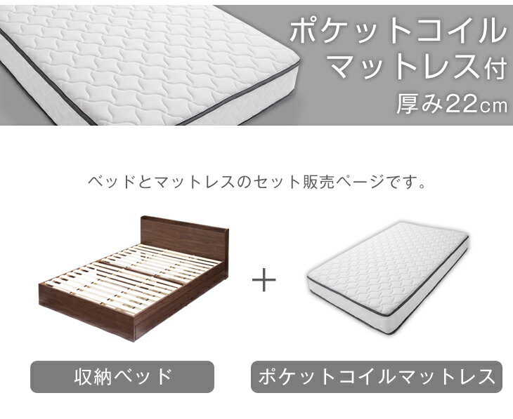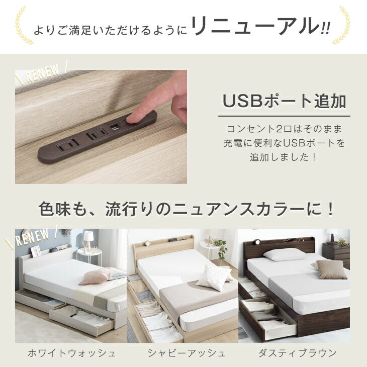 【マットレスセット】RENEW マットレス付 ダブルベッド 収納ベッド ダブル スマホスタンド&USB・コンセント付き 収納付きベッド フレーム マットレス付き ベッドフレーム ベッド ポケットコイルマットレス スプリングマットレス 宮棚 USBポート
