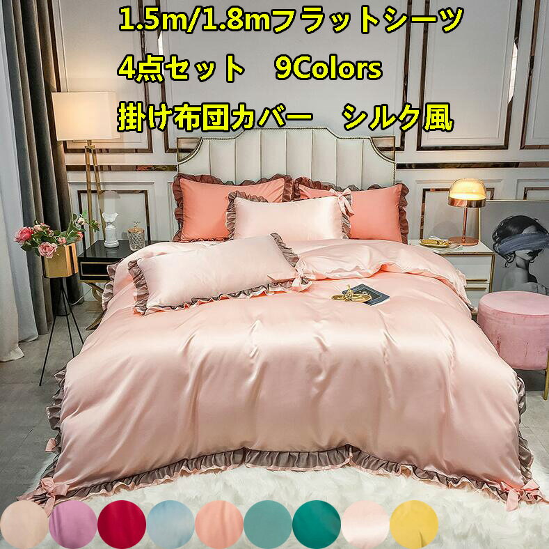 送料無料 大人気 9Colors 姫系 シルク風 高品質 掛け布団カバー 北欧風 1.5m/1.8m フラットシーツ 春夏秋冬 レース 4点セット 少女 新生活 枕カバー 布団カバーセット 寝具カバー 四季通用 敷き布団カバー プレゼント 洗える ベッド用品 シングル/セミダブル/ダブル